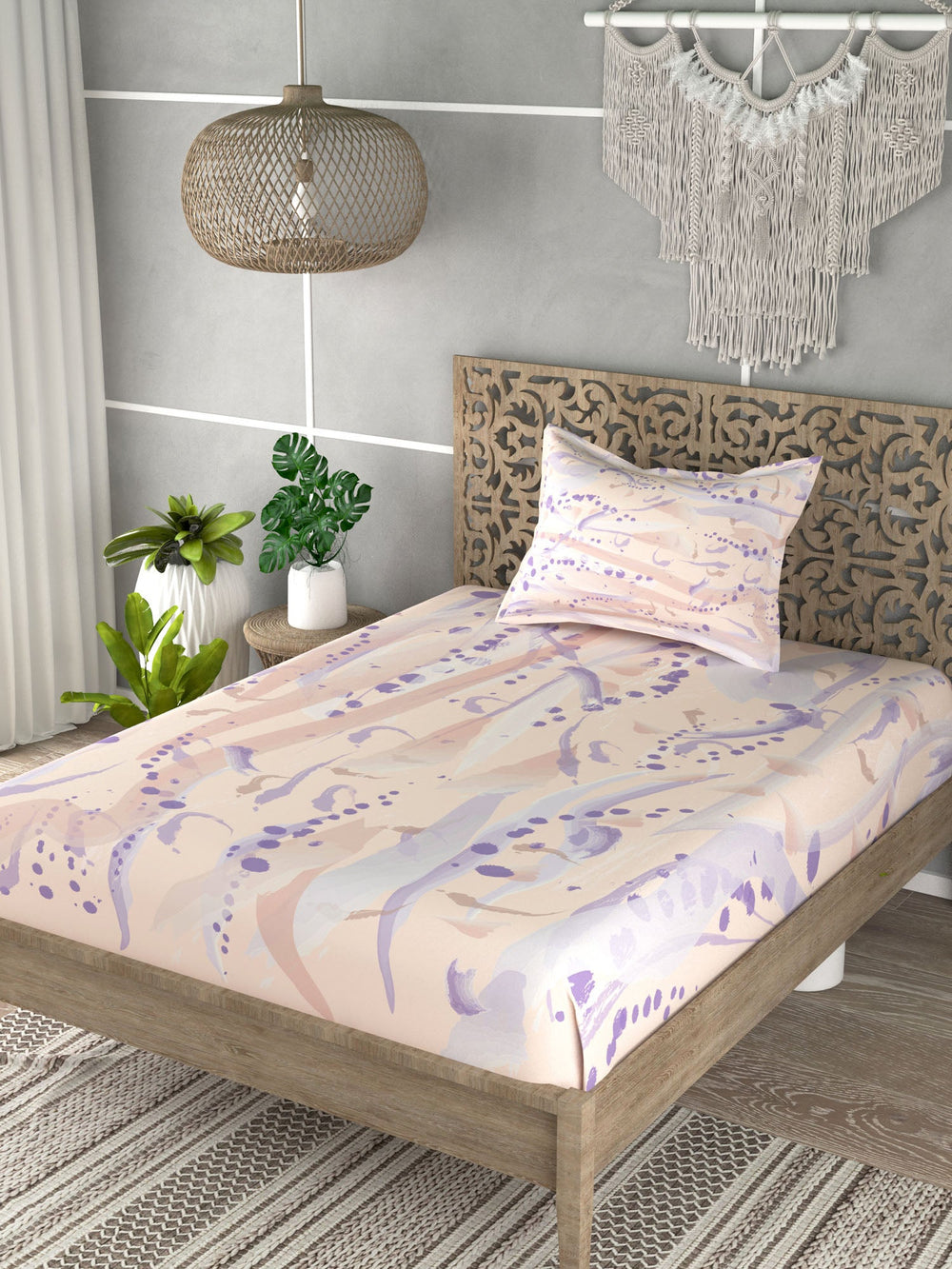 Light Pink Abstract Print Pure Cotton Single Bedsheet with 1 Pillow Cover