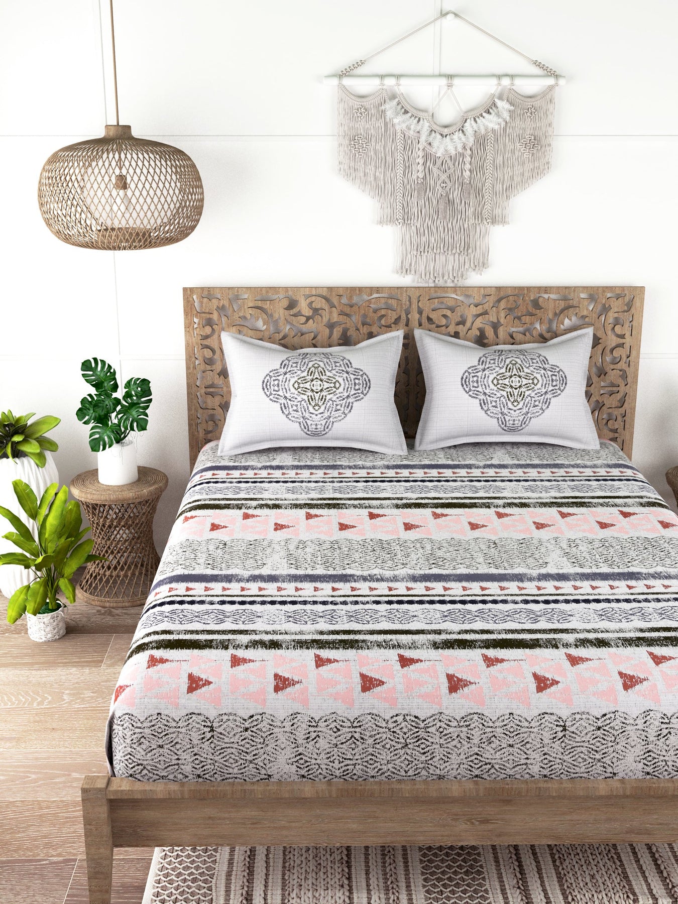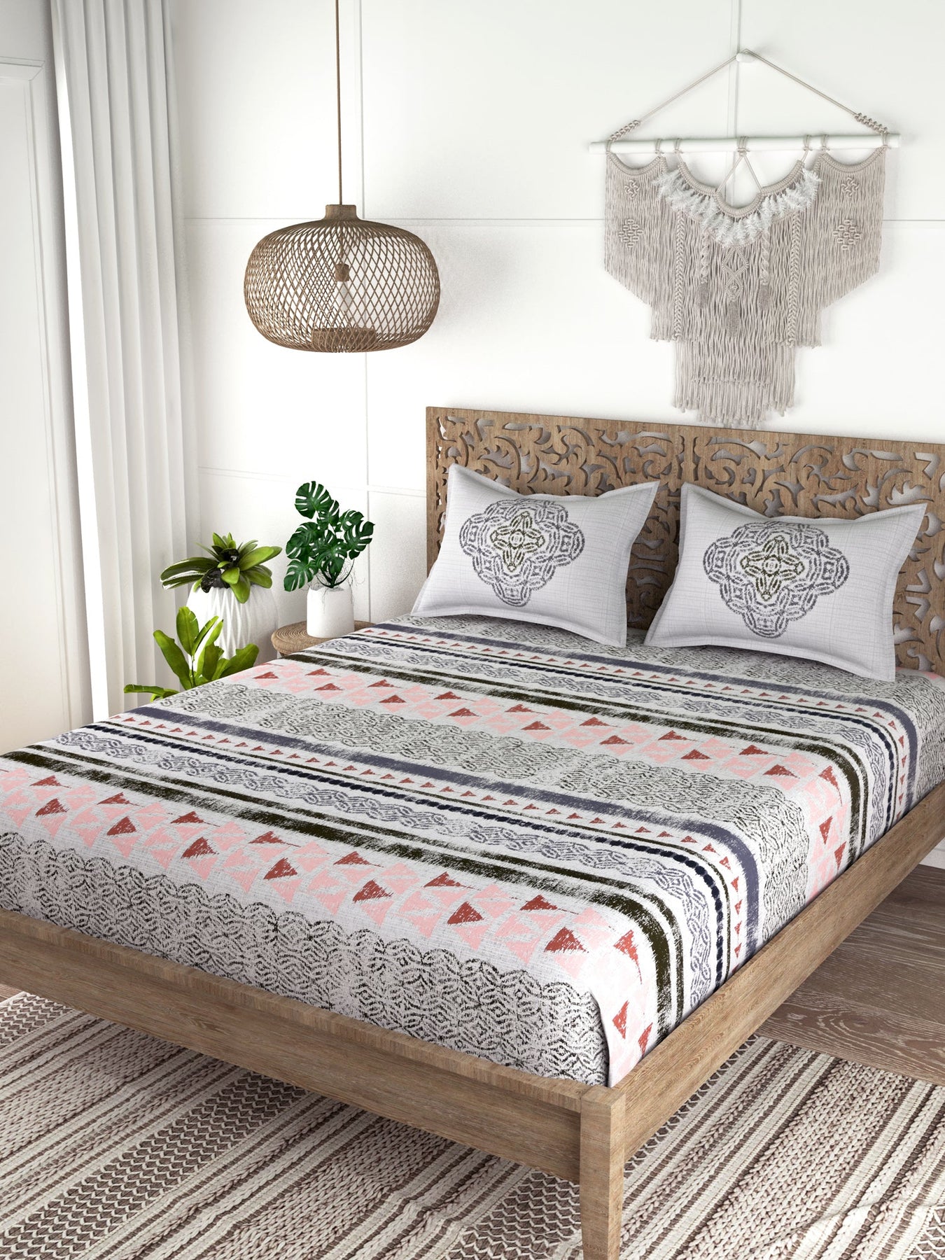 EVER HOME Printed 100%Cotton Super King Size Bedsheet Set for Double Bed