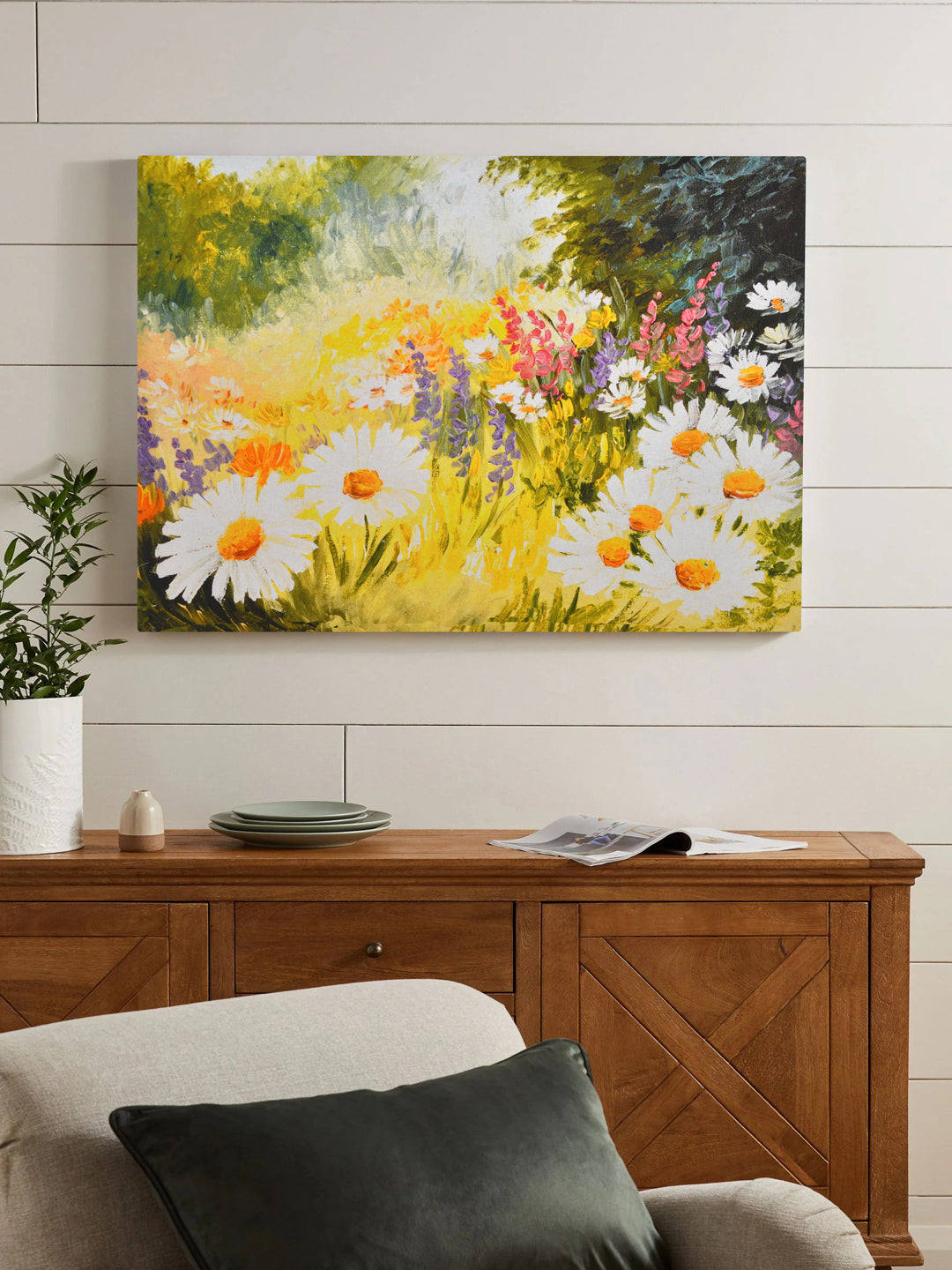 PRODUCT DETAILS Set content: 1 Wall artColor: White/YellowFrame Type: WoodenPrint: FloralShape: LandscapeFrame included: Yes