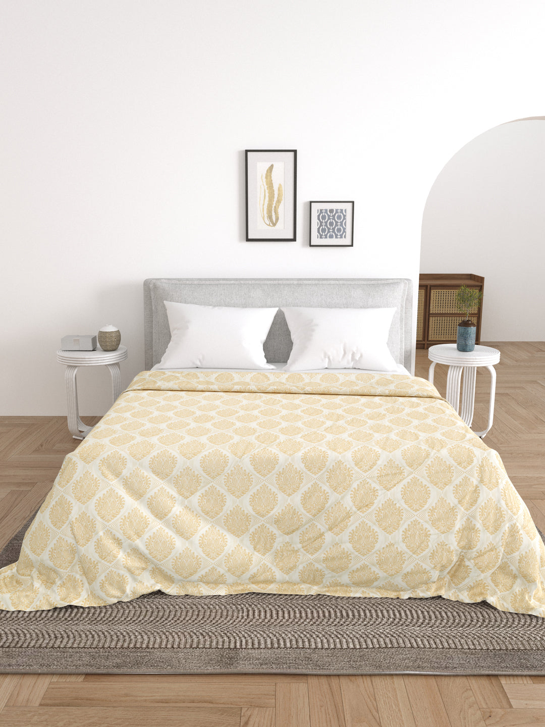 Off White and Yellow Double bed AC Printed Comforter