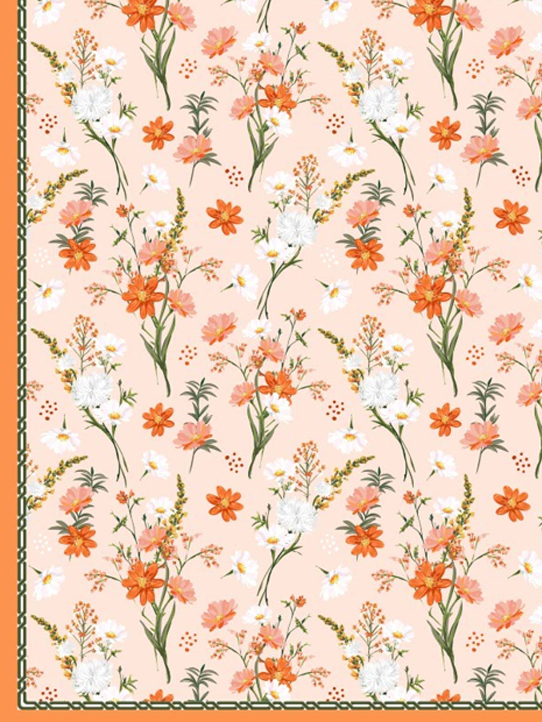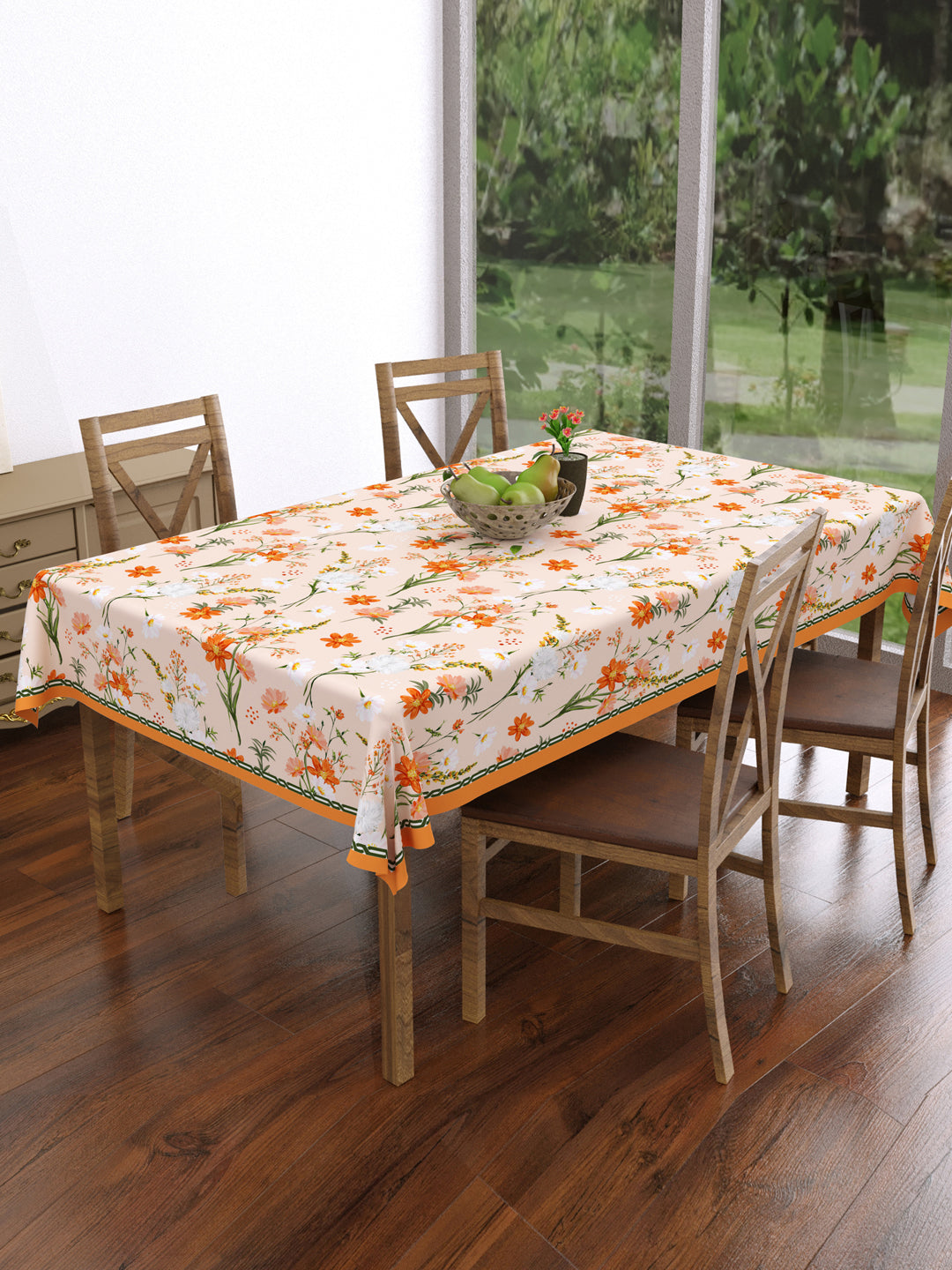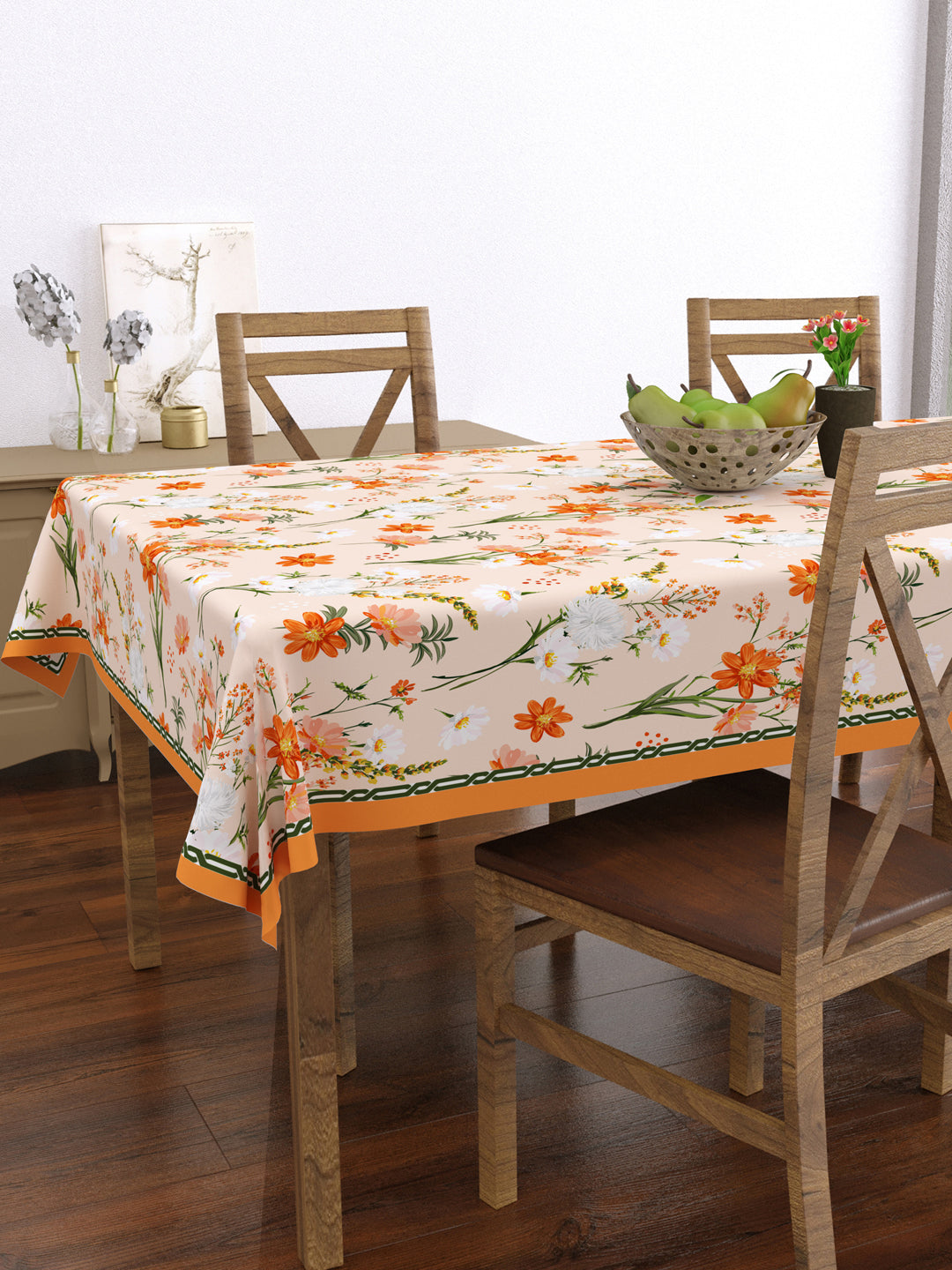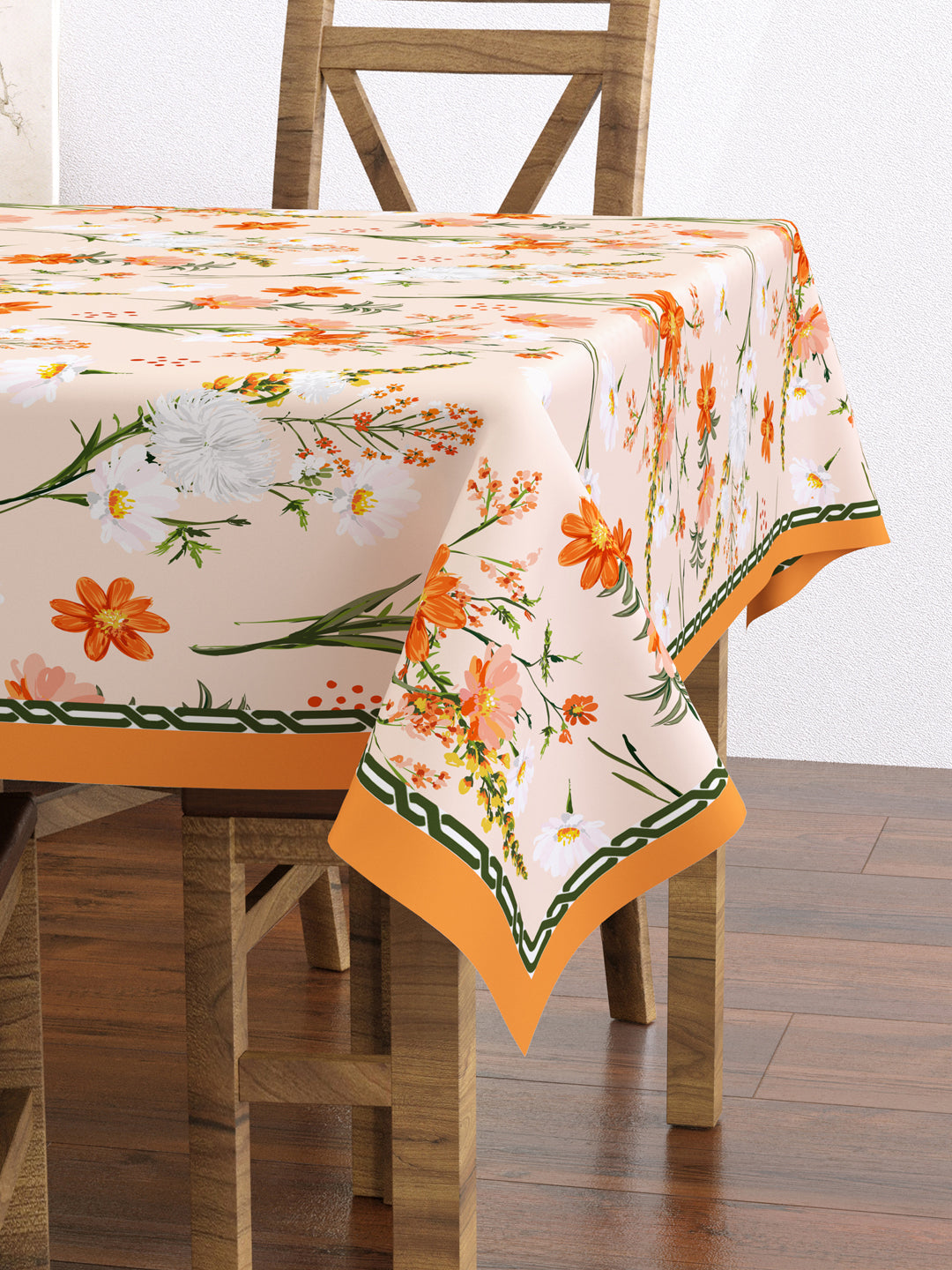 Orange Floral Print Rectangular 4 Seater Table Cover