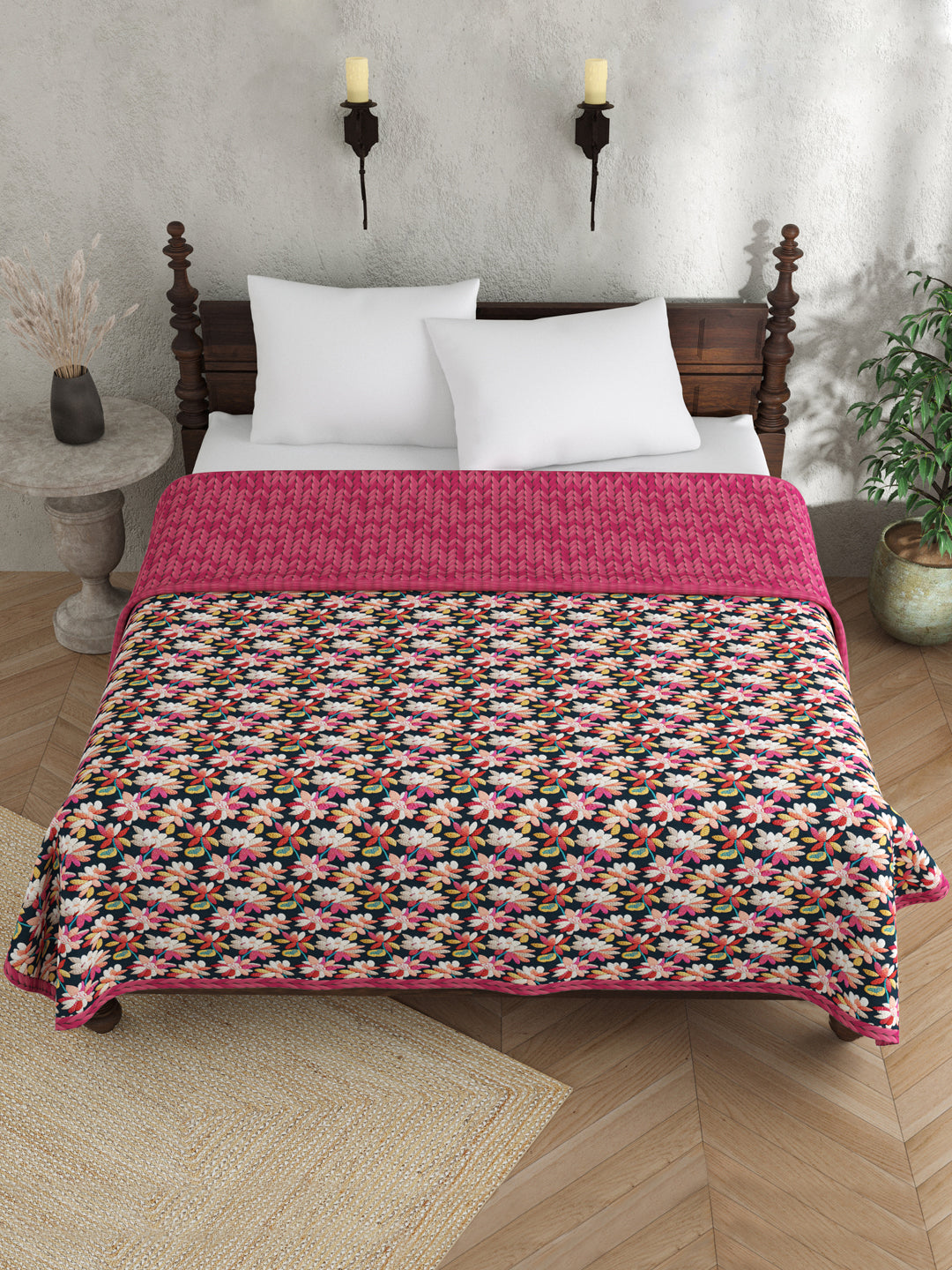 Pink & Blue Floral Print AC Room 120 GSM Cotton Double Bed Dohar