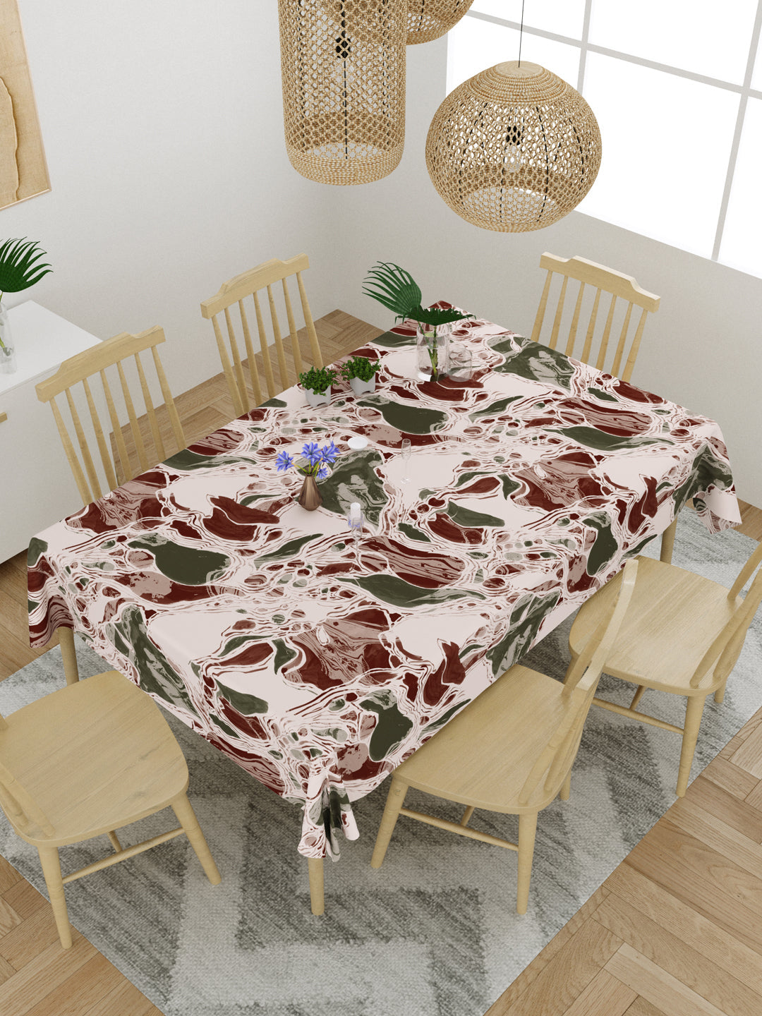 Red and Green Abstract Print 6 Seater Table Cover